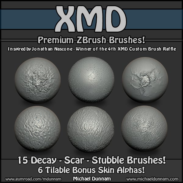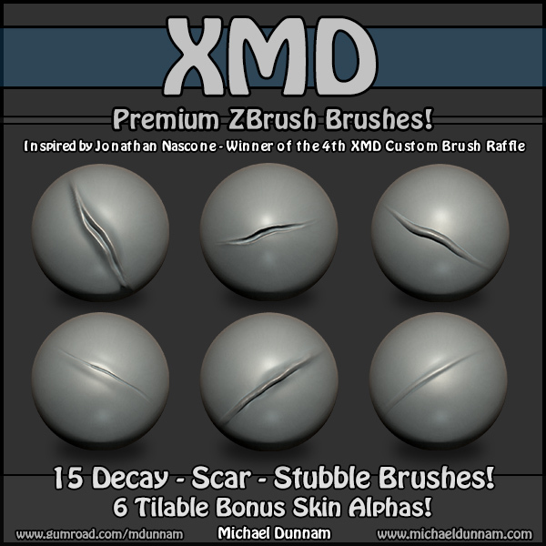 This set has tilable skin alphas, stubble brushes, scar and decay brushes!