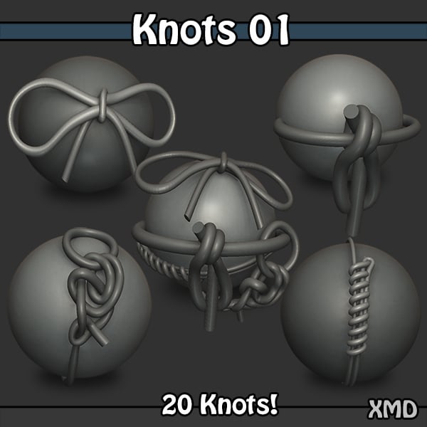 This is an amazing set of ZBrush IMM Knots. These are low poly with creased edges so they can be easily subdivided. The ends are separate polygroups as well.